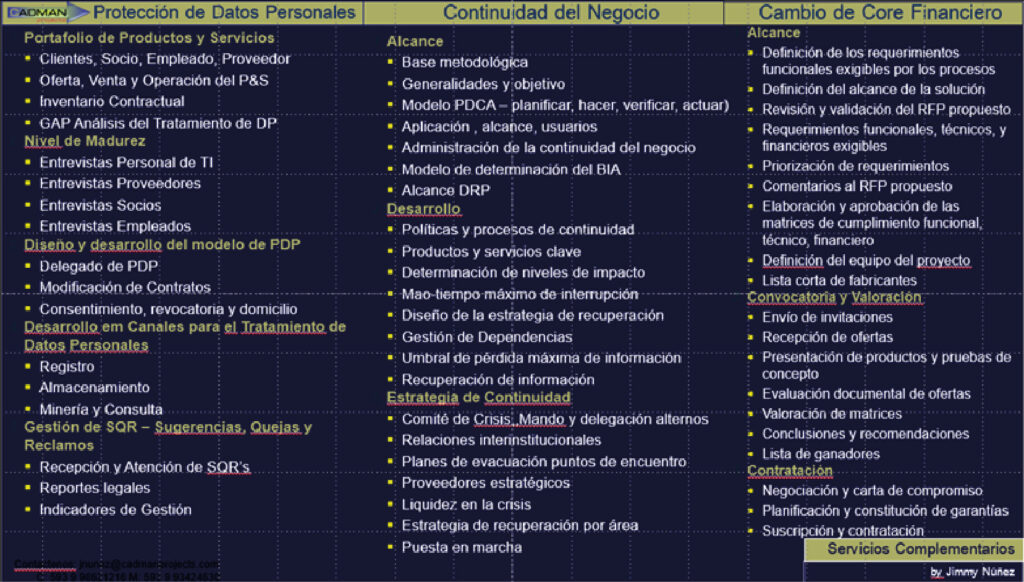 El portafolio ofertado considera la gestión de proyectos en los ejes siguientes: