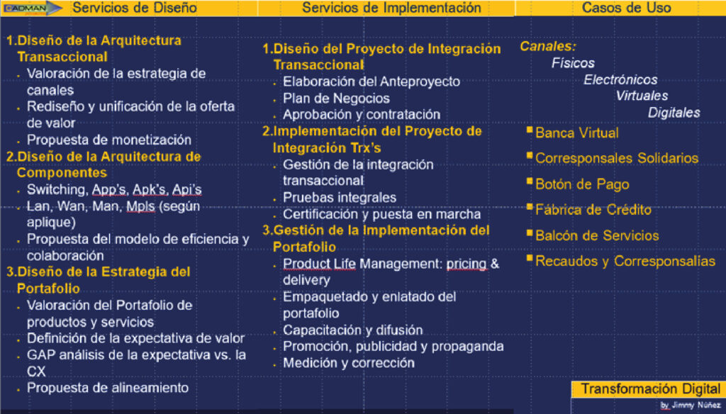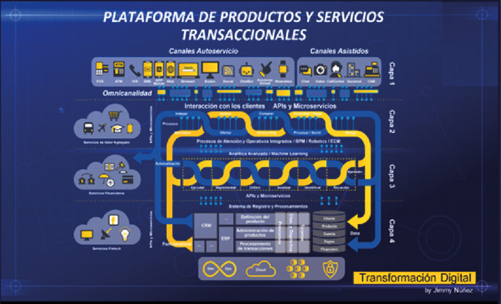En base al entendimiento de la lógica digital del Cliente, diseñamos la arquitectura digital que se consume en la Plataforma de los Productos y Servicios donde se ofertan.